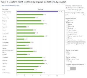 Age-standardised asthma prevalence by language used at home: